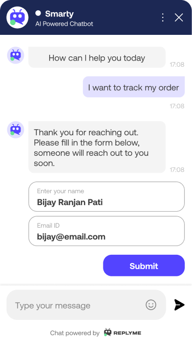 Chat-based prompts gather contact info mid-conversation, reducing friction and improving conversion rates.